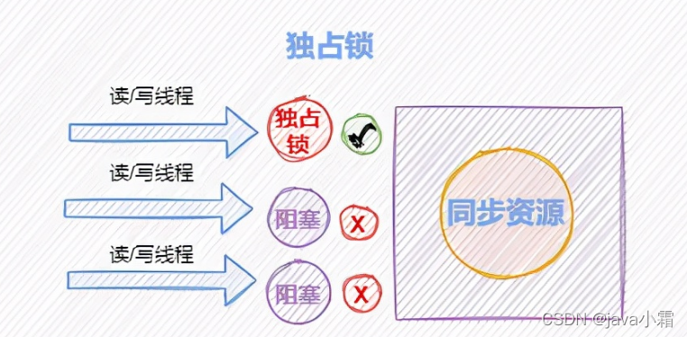 读锁的共享锁可保证并发读是非常高效的,读写,写读,写写的过程是互斥的。