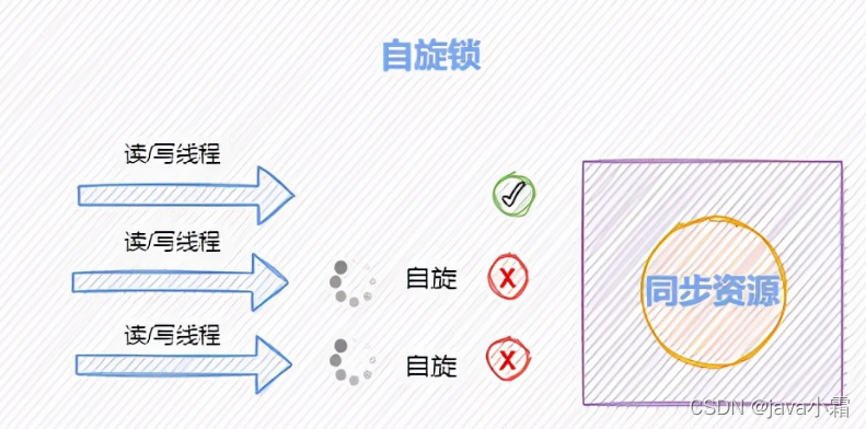 自旋锁 是线程在没有获取到锁时不会立即阻塞,会一直while循环去尝试获取锁,这个便称为自旋。