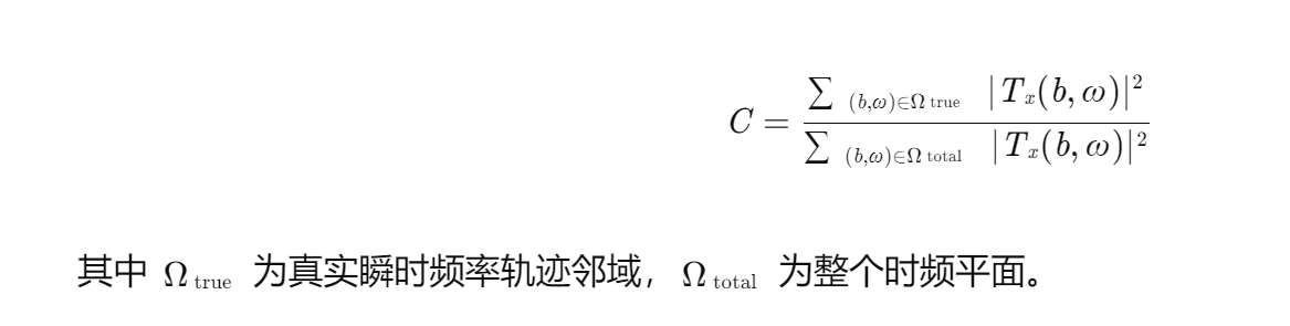 采用以下指标量化时频分析性能: