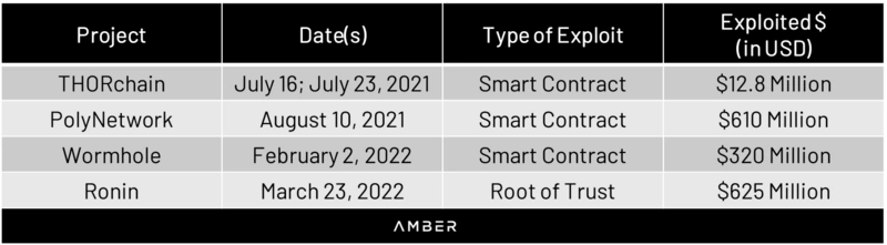 过去一年中著名的跨链桥漏洞攻击事件,来源: Decrypt, Kudelski Security Research, The Verge, VentureBeat