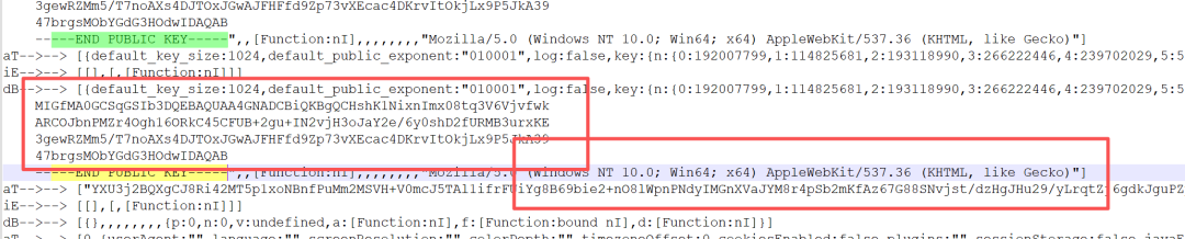 console.log(rsaEncrypt("Mozilla/5.0 (Windows NT 10.0; Win64; x64) AppleWebKit/537.36 (KHTML, like Gecko)"));我们继续看第二个参数,日志如下