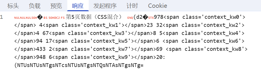 可以看到响应数据里面,有css和一个base64加密的字符串