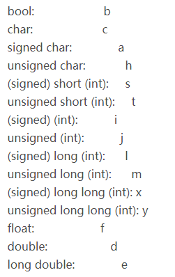 类型对照表: