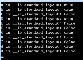 std::cout << "C is __is_standard_layout: " << __is_standard_layout(C) << std::endl;