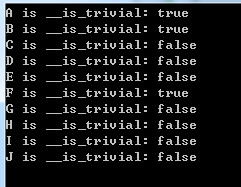 std::cout << "C is __is_trivial: " << __is_trivial(C) << std::endl;