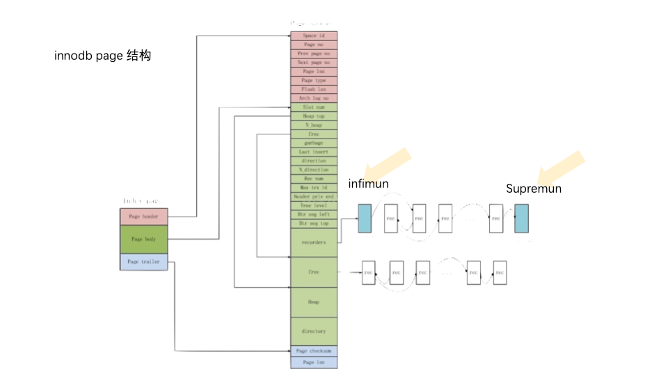 innodb是基于b+tree,为了单页可以加载更多的索引,mysql分离了两种不用的存储方式,分别为叶子,和根节点,这里我们统一讲,infimum存在与逻辑节点的最小值, supremun存在于逻辑节点的最大值,在page创建的时候就被划分,并且不会发生改变(除上下指针)基于这个我们大胆猜测,间隙锁很有可能锁住了他的下一个元素就知道,当前锁是不是存在了