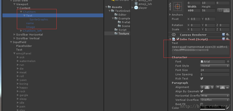 这里有同学建议在做聊天气泡时,可以更改为一张图集对应多个Text,这样能节省资源,不过我突然想到每个Text一个图集,可以随时更换图集,这样表情图更丰富一些,于是我就先将现有的聊天demo改为了聊天气泡