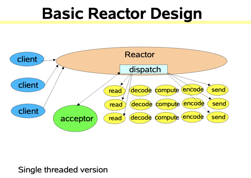 Reactor:把 I/O 事件根据类型分配给分配给对应的 Handler 处理。
