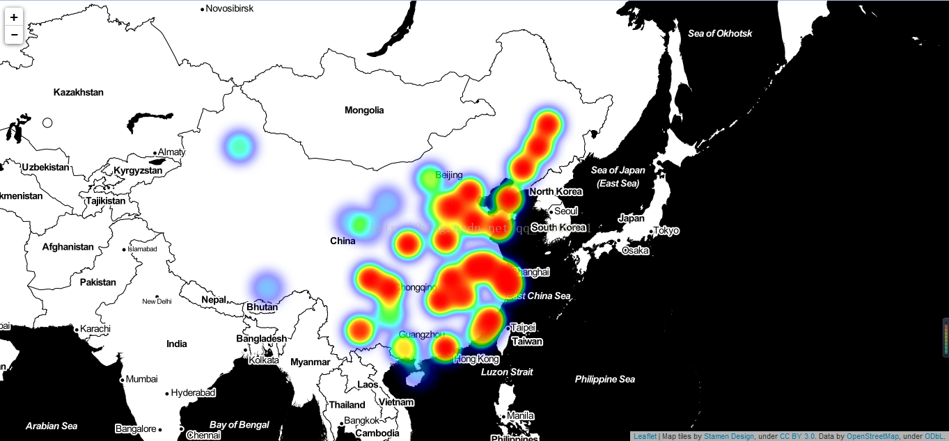 利用Python的开源模块Folium调用openstrertmap生成html,利用Python爬取的互联网地图的经纬度坐标与统计局公布的年度GDP数据结合,构造data(x,y,gdp)http://blog.csdn.net/qq_14906811/article/details/73717447