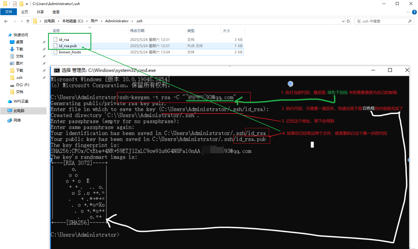 2. 配置 秘钥和公钥文件,打开CMD,执行代码 ssh-keygen -t rsa -C "xxxxx@xxxxx.com" 邮箱记得换成自己的