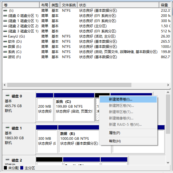 选择刚分配的区域,然后鼠标右键==>新建简单卷,然后一路回车