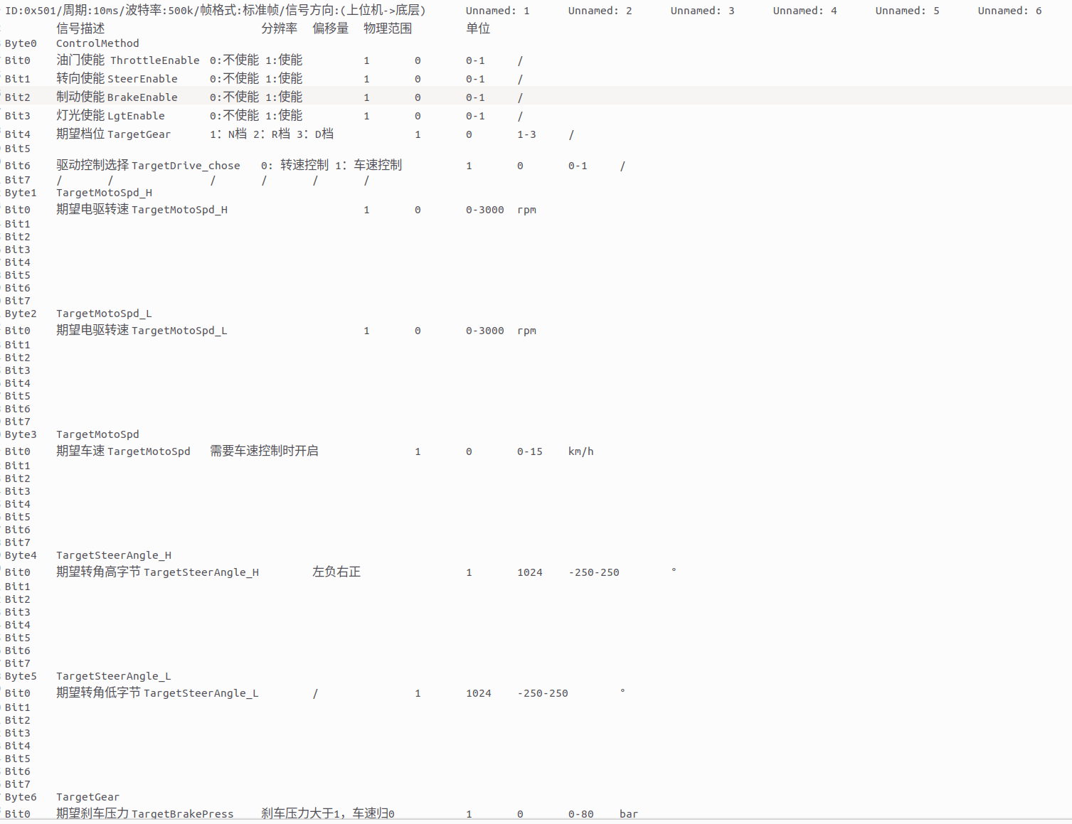 excel_file = '/home/sukai/下载/阿克曼底盘资料/自动驾驶线控底盘USERCAN报文协议-V2.2(标品)(自改).xlsx'