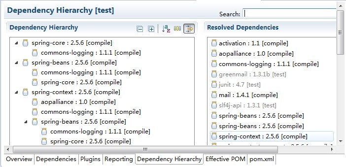 表示依赖列表,maven eclipse插件已经实现,有图形化显示,在pom.xml的dependency hierarchy页