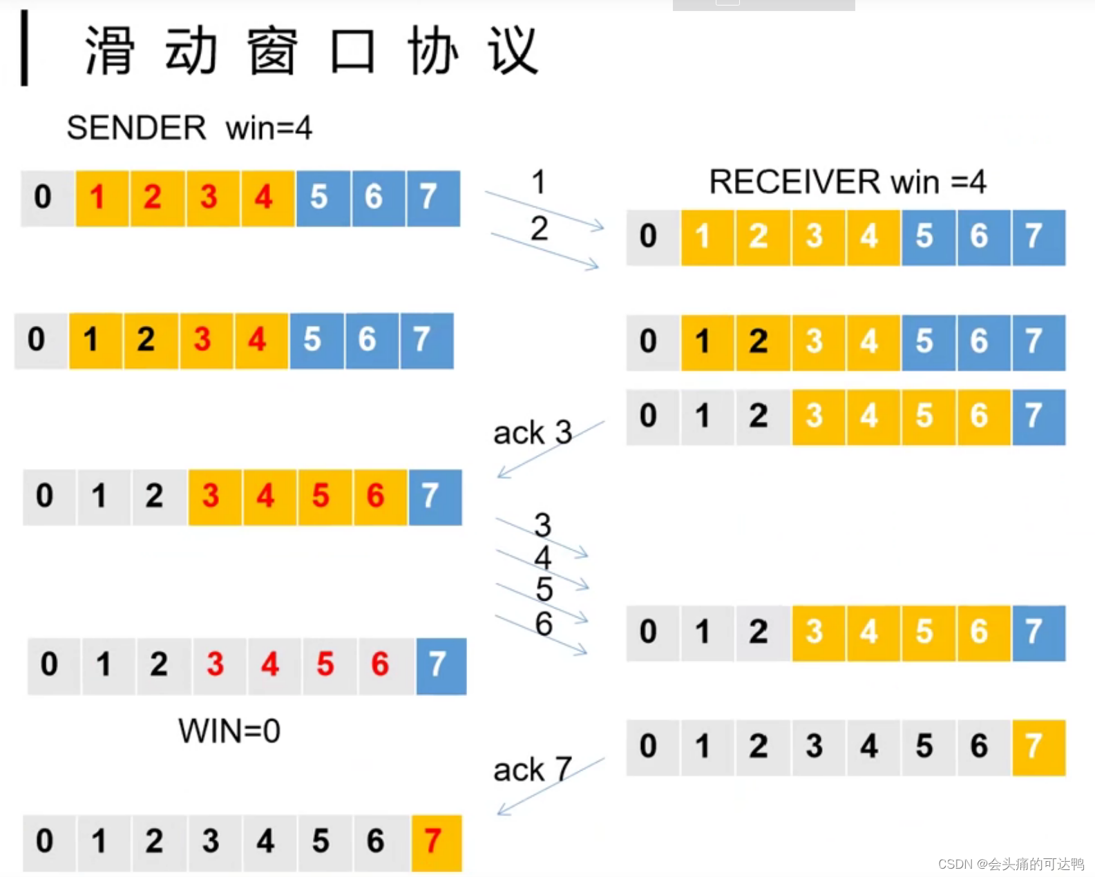 滑动窗口协议是TCP 的一种应用,用于网络数据传输时的流量控制,以避免拥塞的发生