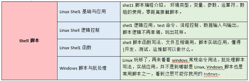 掌握shell脚本,包括shell基础与应用、shell逻辑控制、shell逻辑函数等。