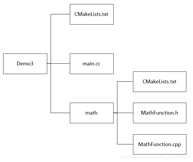 这种情况,必须在Demo3目录与math目录下分别有一个CMakeLists.txt文件,并且在本目录将会把math目录下的文件编译成静态库有main.cc中的函数调用