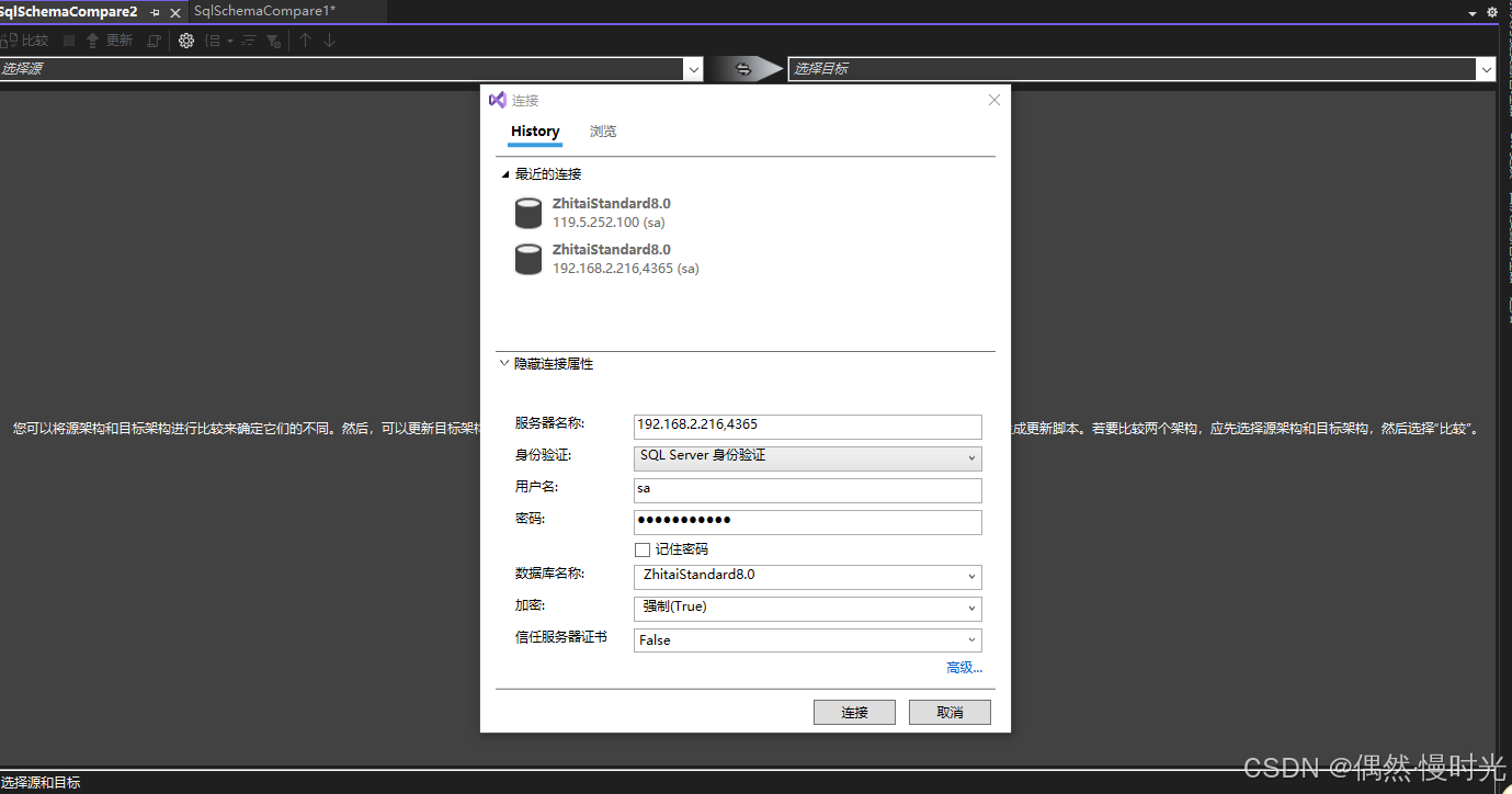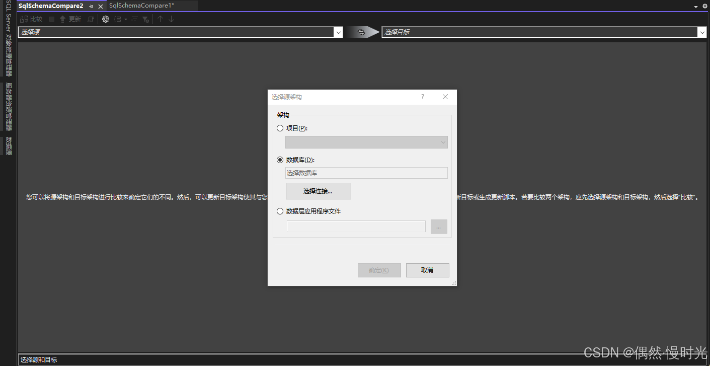 在做项目时,只要不是单人项目。每次更新sql 表架构时,都会问上一句有没有配置文件,sql脚本更新。我也习惯了这样,然而事事都有意外。最近到了更新时间,结果都无法给我提供脚本。我准备去查看SVN Model下类变更时。同事告我了另一种方式。用数据架构来比较更新。