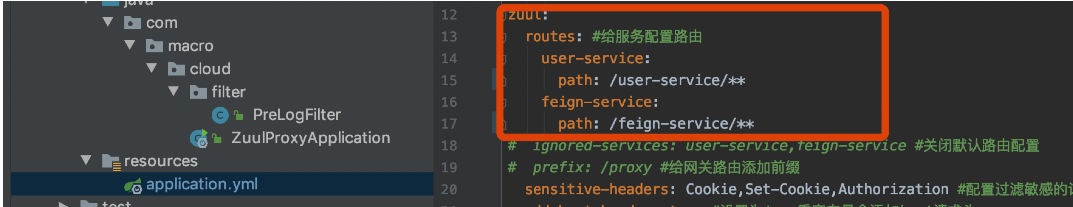 将匹配/userService/**的请求路由到user-service服务上去,匹配/feignService/**的请求路由到feign-service上去。