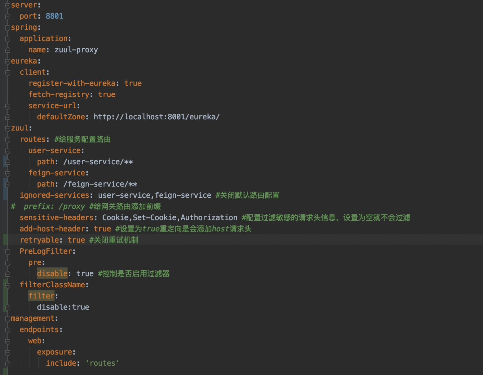 Zuul和Eureka结合使用,可以实现路由的自动配置,自动配置的路由以服务名称为匹配路径,相当于如下配置: