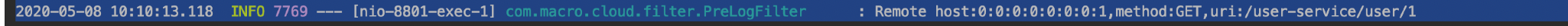 添加过滤器后,我们访问http://localhost:8801/user-service/user/1测试下,会打印如下日志。