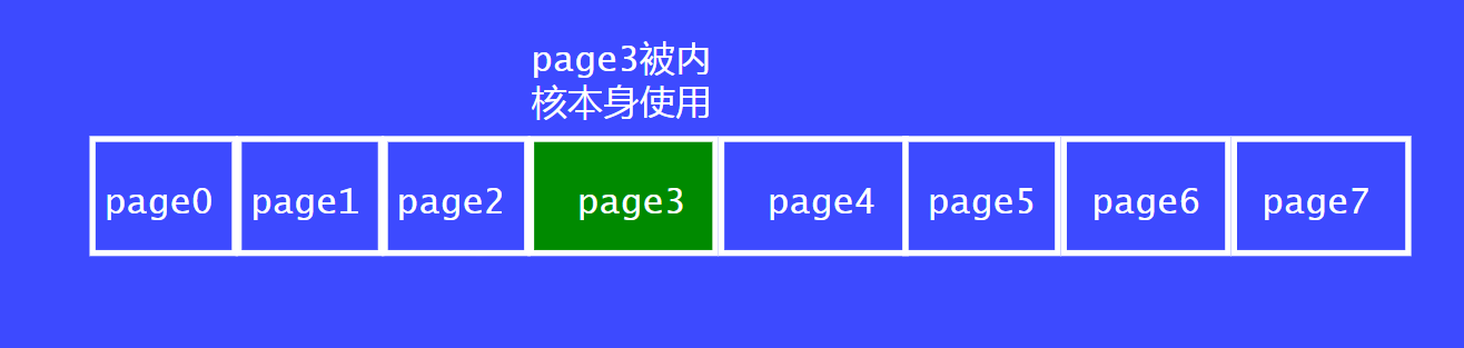 尽管其他的页面都是空闲页面,导致page0 ~ page 7 不能合并为一个大块的内存。