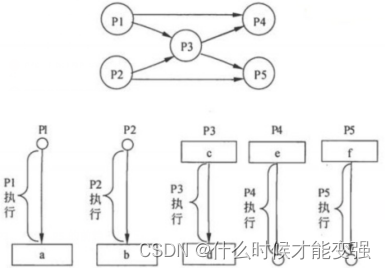 (2)因为P3是P1和P2的后继,P3执行前应测试P1和P2是否执行完,故应采用P(S1)P(S3)来分别测试P1和P2是否执行完;因为P3是P4和P5的前驱,P3执行完应通知P4和P5,故应填V(S5)V(S6)