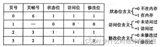 25.例题:某进程有4个页面,页号为0~3,页面变换表及状态位、访问位和修改位的含义如下图所示。若系统给该进程分配了3个存储块,当访问前页面1不在内存时,淘汰表中页号为什么的页面代价最小?