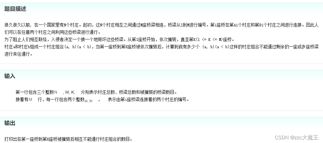 读题可以发现,如果两个村庄不能互相连通,那就算作一对 (a<b)。