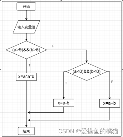 根据下列流程图编写程序实现相应分析处理并显示结果。返回文字“x=a*a*b的值:”和x的值;返回文字“x=a-b的值:”和x的值;返回文字“x=a+b的值:”和x的值。其中变量a、b均须为整型。编写程序代码,使用JUnit框架编写测试类对编写的程序代码进行测试,测试类中设计最少的测试数据满足语句覆盖测试,每条测试数据需要在测试类中编写一个测试方法。使用startsWith判断期望结果返回文字和实际返回文字是否一致。