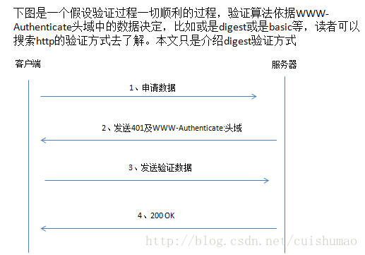 关于该验证过程实现的双向验证机制,是通过服务器或是客户端产生的随机字符串,然后经过MD5算法来实现的。该文最后服务器没有返回Authorization头域,这个也可以的,只是不够规范。