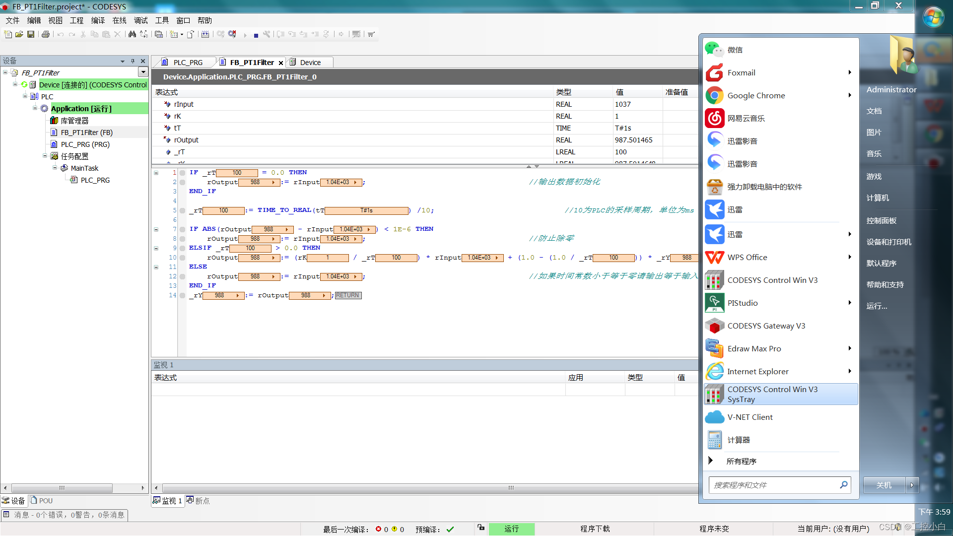 codesys 入门 模拟调试 1.刚开始用软件的时候,硬件没有,只能用电脑做模拟,一直扫描不到端口,最后发现需要启动。2.在线调试的时候,设置参数 需要调试那边点击写入(这个设计很无语)conctrol win 3 systry。