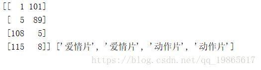 labels = ['爱情片','爱情片','动作片','动作片']