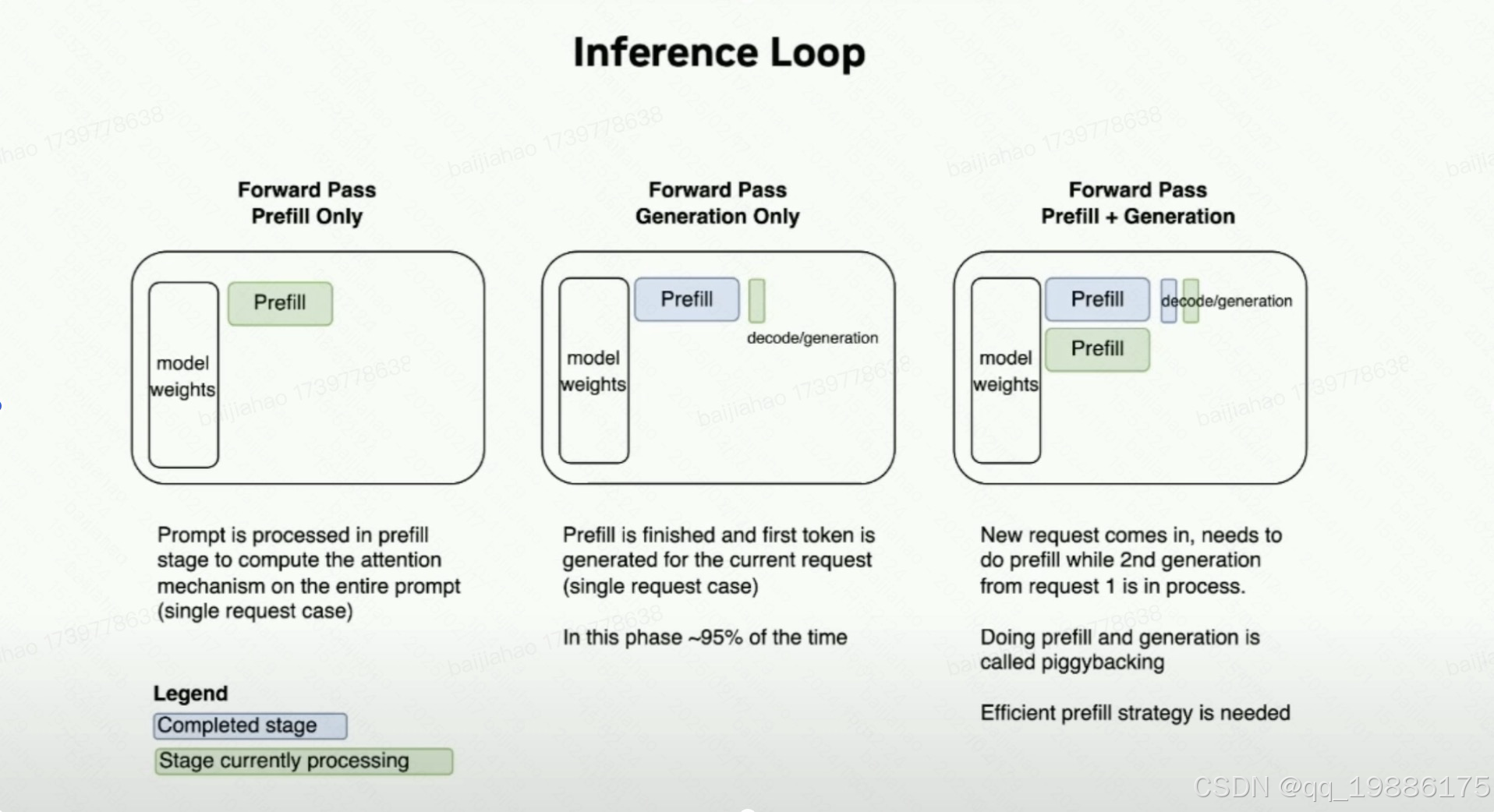 我们知道llm推理是个自回归过程,所以模型会迭代地输入一个序列,采样下一个token,将该token附加到输入序列中,并继续此过程,直到LLM生成一个表示生成结束的token。(7)gpu加速和缓存,这其中注意力计算会占用很大的计算资源,尤其在多头注意力和长序列输入过程中,因此llm会利用gpu进行并行计算,在gpu内存中缓存query,key和value等矩阵提高计算效率。然后在gpu的支持下llm会逐步生成输出,每次生成一个token后,这个token会作为输入再次输入到llm中。这里的IO开销很大。
