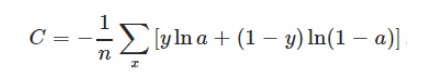注意:公式中的x表示样本,y代表预测的输出,a为实际输出,n表示样本总数量。交叉熵损失函数常用于当sigmoid函数作为激活函数的情景,因为它可以完美解决平方损失函数权重更新过慢的问题。