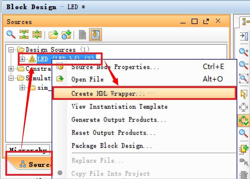 然后点“OK”自动连接。完了点击左边的“Sources”,在Design Sources下的.bd文件右击,选择“Create HDL Wrapper”,如图11所示:
