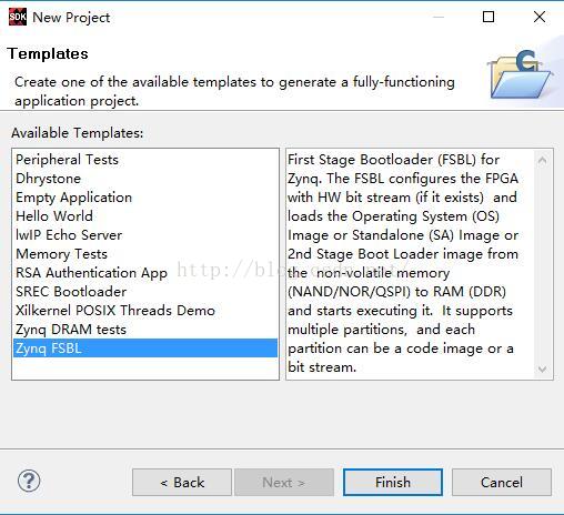 填写工程名,点击“Next”,选择FSBL,点击“Finish”,如图18所示: