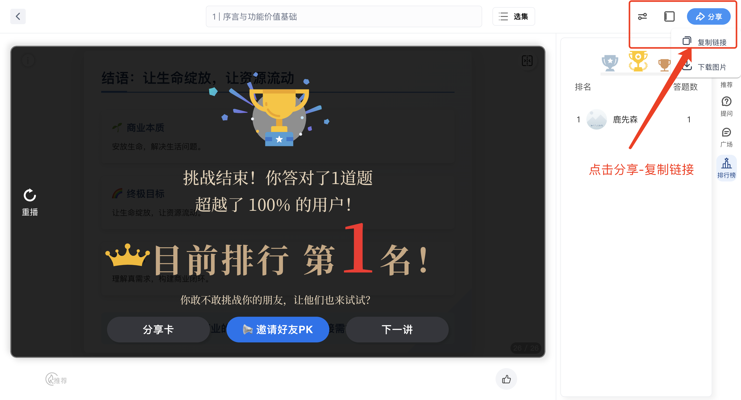 学习完成自动弹窗,可以参加课后练习题,巩固学习效果