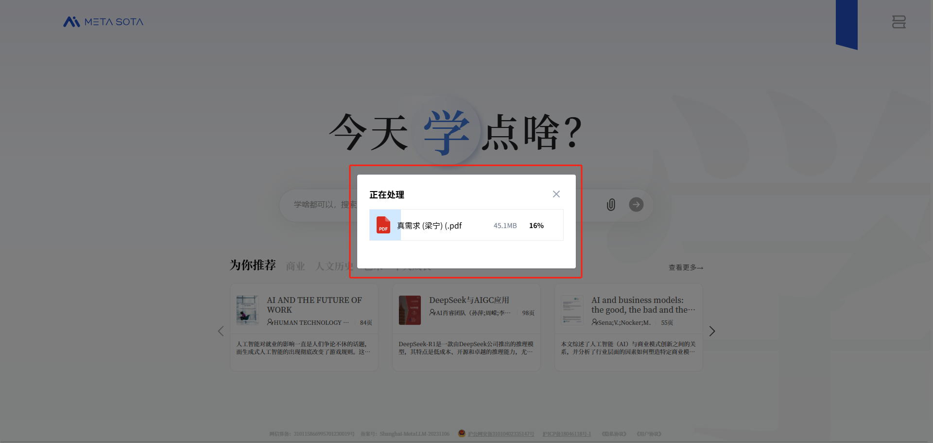 点击上传文件按钮,将梁宁老师的《真需求》上传上去,因为文件过大,这个过程需要几分钟。
