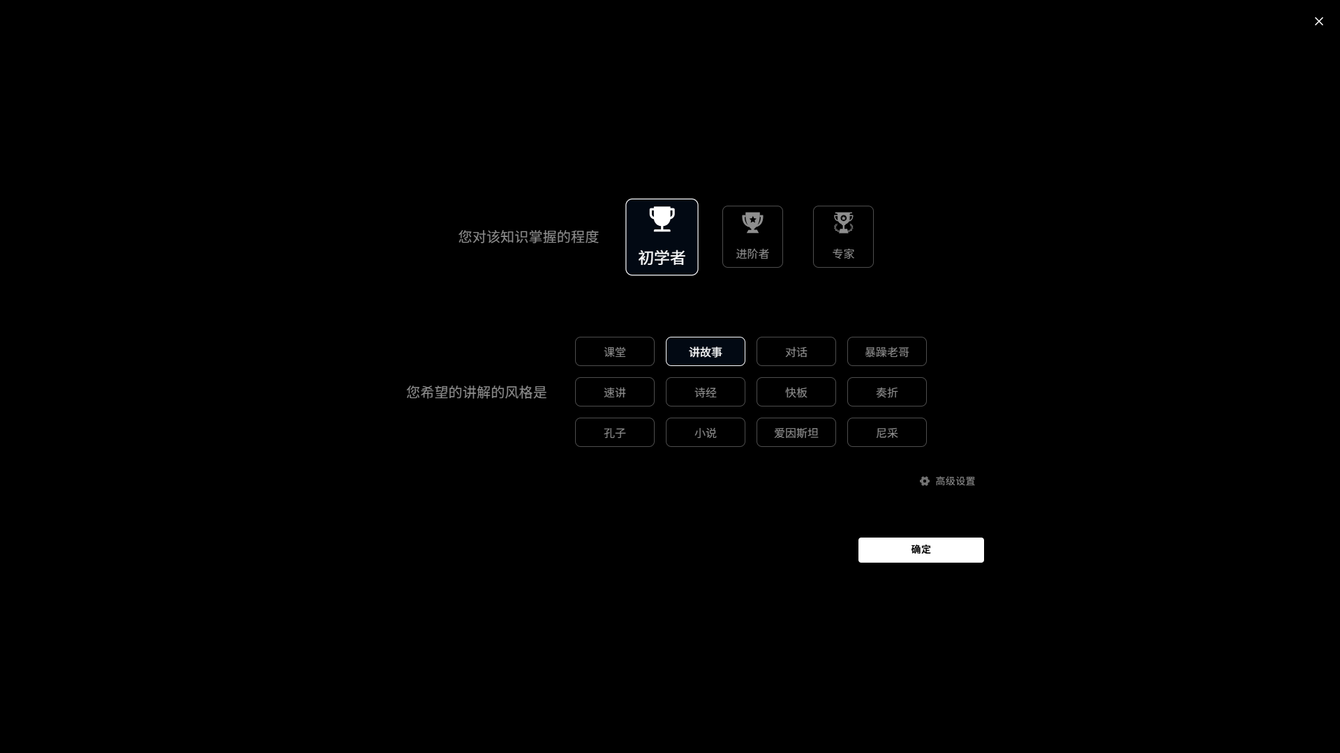 在制作之前进行基本的设置,可以设置讲解风格,知识掌握程度。