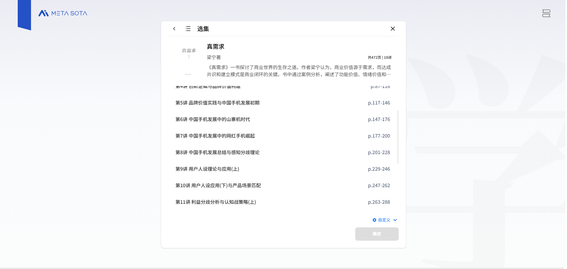 秘塔AI会将上传的书籍按照章节进行拆分,选择其中的一个章节,点击确定。