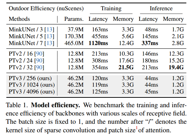 PTV3论文阅读 本文并没有在关注机制内寻求创新的动力。相反,它侧重于克服点云处理背景下精度和效率之间的现有权衡,利用规模的力量。从3D大规模表示学习的最新进展中获得灵感,我们认识到模型性能更受规模而不是复杂设计的影响。因此,我们提出了点转换器V3 (PTv3),它优先考虑简单性和效率,而不是缩放后对整体性能影响较小的某些机制的准确性,例如用具有特定模式组织的点云的高效序列化邻居映射取代KNN的精确邻居搜索。