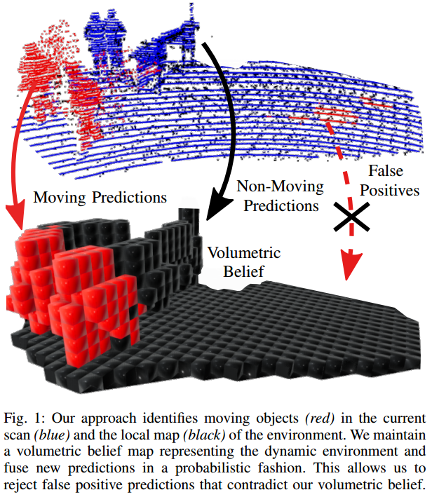 Moving Object Segmentation in 3D LiDAR Data: A Learning-Based Approach Exploiting Sequential Data 翻译 在场景中检测和分割移动物体的能力对于构建一致的地图、做出未来状态预测、避免碰撞和规划至关重要。在这封信中,我们解决了3D激光雷达扫描中运动物体分割的问题。我们提出了一种新颖的方法,将当前仅激光雷达移动物体分割的最新技术向前推进,为自主机器人和其他车辆提供相关信息。我们的方法不是从语义上对点云进行分割,即预测车辆、行人、道路等语义类,而是。
