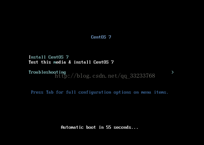 首先你进入安装界面,里面有三个选项,这里选择第一项,Tab键选中,Enter键确定