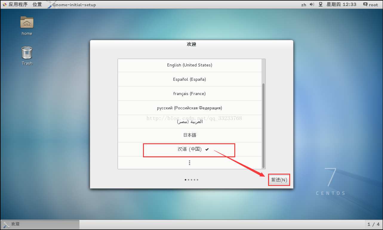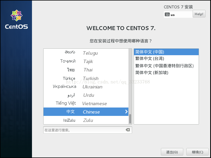 进入图形化安装界面,第一步选择系统语言