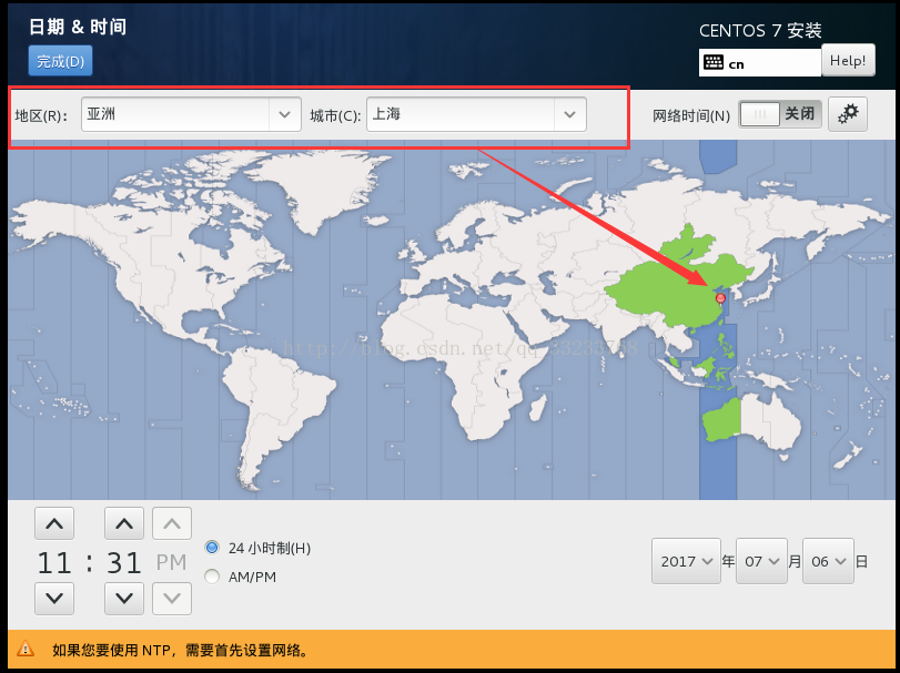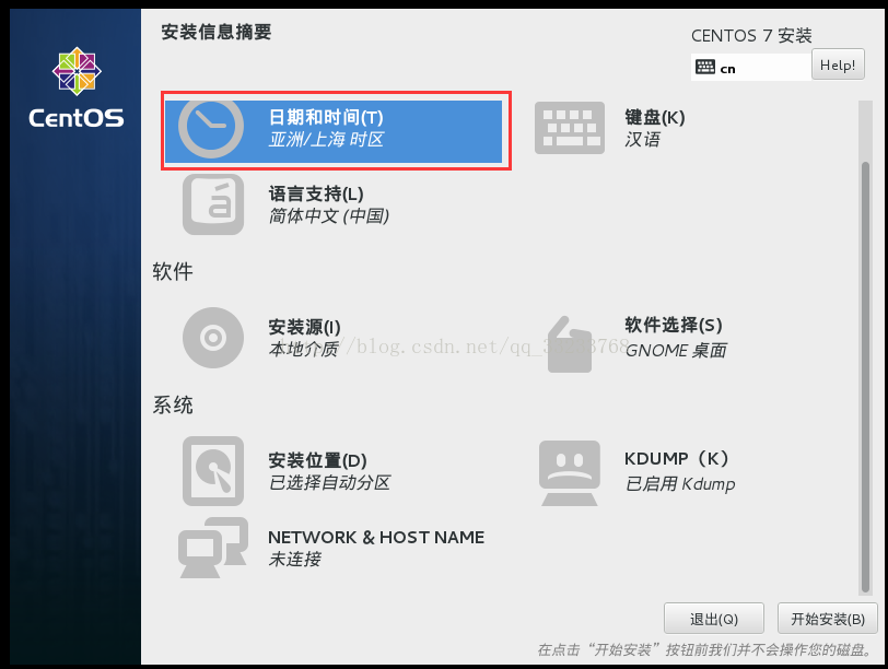 安装信息摘要,这里我们一项一项的设置,首先设置日期和时区