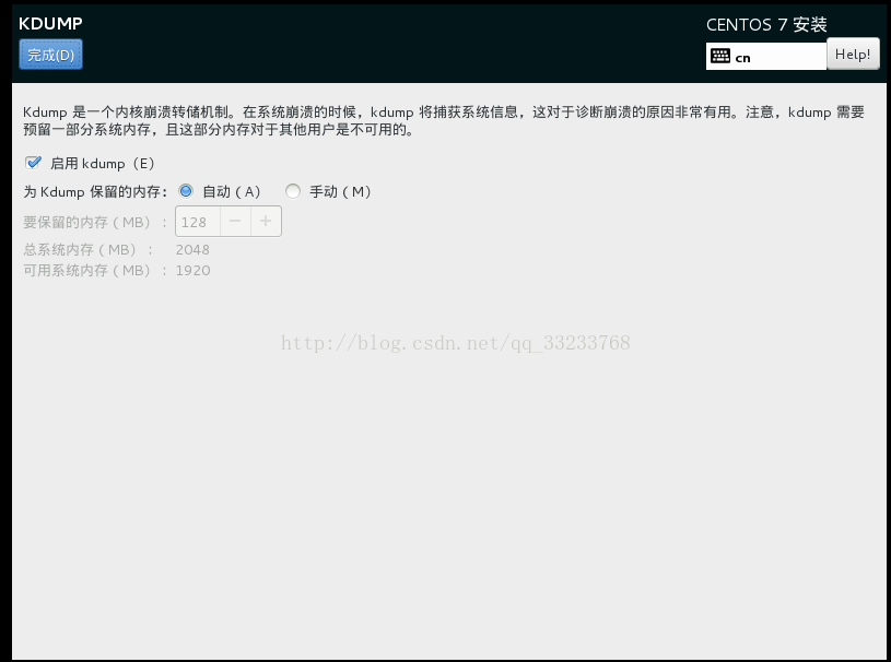 设置Kdump的大小,手动可以更改大小,自动不能,想要更改大小,先选手动,改过之后在改到自动
