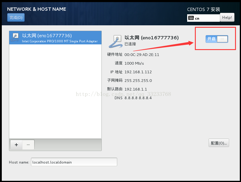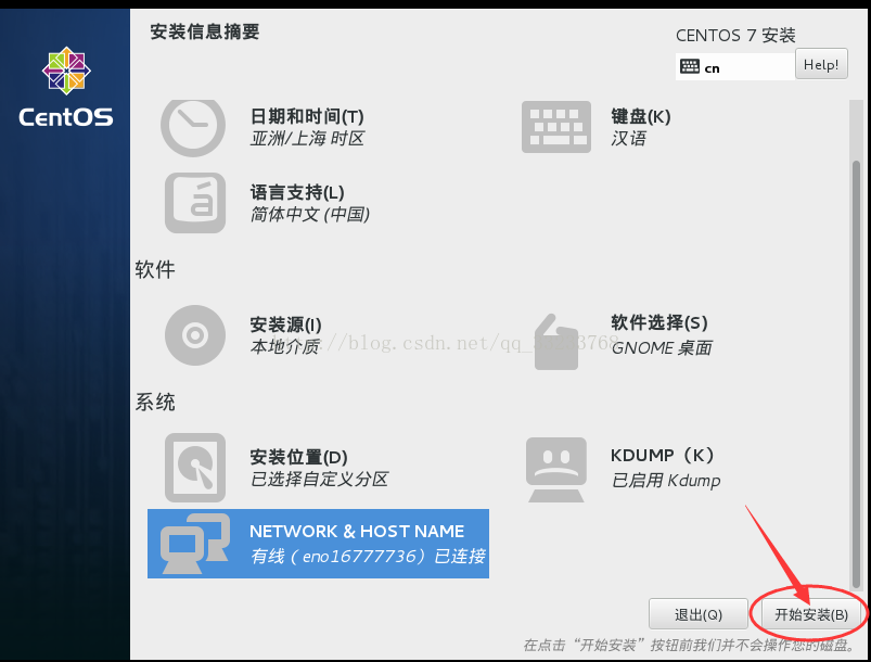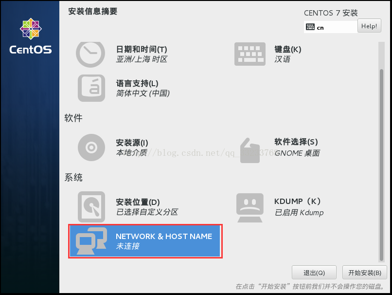 网络设置,在Centos7中可以在这里就设置网络,等系统安装之后,就能实现联网