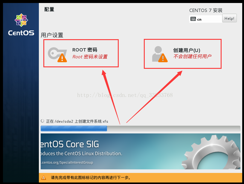 接着就会进入安装过程,在这个中你要设置Root密码和创建用户