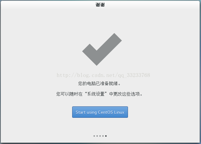 这样就完成了安装,现在就可以开始你的Centos7的学习之旅了,点击Start using CentOS Linux,开始自己的Centos7之旅吧!!