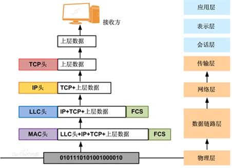 2) 下传:将上层传来的,加上首部(其中有目的地MAC地址,由上层ARP协议计算得到)和尾部(其中有冗余码,即添加的帧检测序列),即封装成帧,交给下一层,物理层。